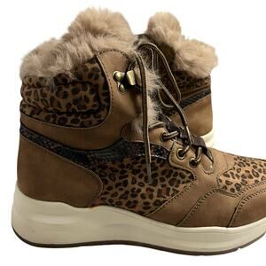 Patrizia by Spring Step Sneaker Booties Lace Up 39 Animal Print Side Zip 8.5
