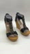 Patrizia by Spring Step Pegacon Black Embellished Wedge Sandals, size 39 equivalent to a woman's US size 8. Embellished t- straps. Black wrapped heel with stud detail. Zip back. Cork wedge. Heel height: 4", with a 1.25" platform.