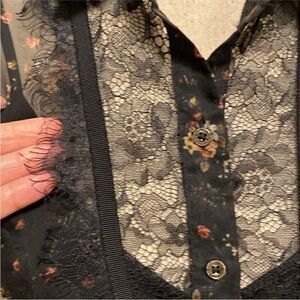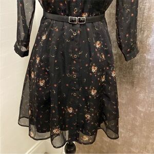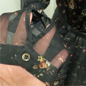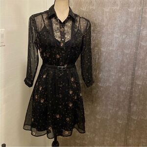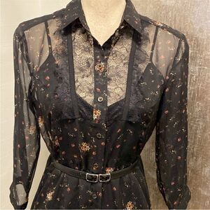 Patrizia Pepe silk Elegant Black Floral Sheer Dress with slip, S