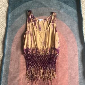 Great Preloved condition size medium really pretty tan and purple color lace detail fringe detail Great for a festival or a concert