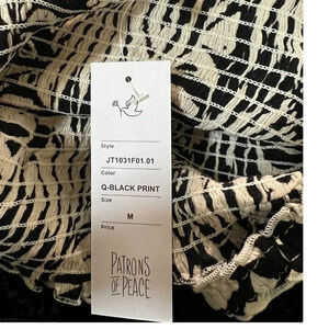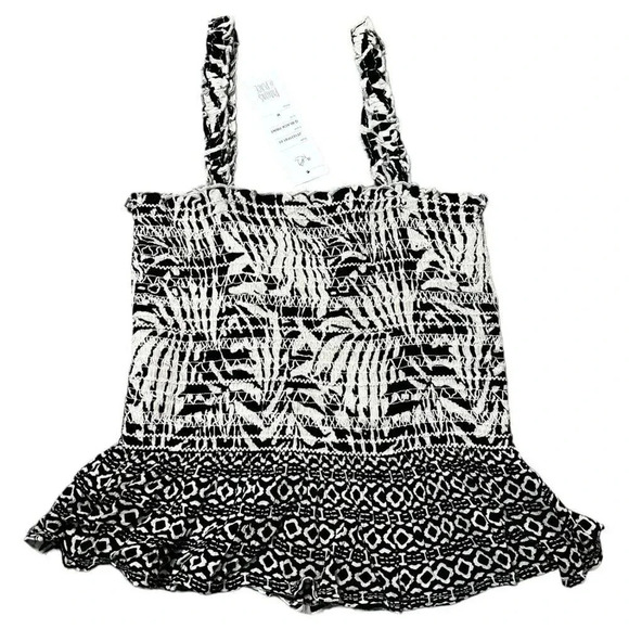 Patrons Of Peace Boho Palm Leaf Geo Print Smocked Peplum Top Size Medium