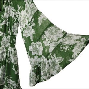Patrons Of Peace Size S Floral Smocked Bell Sleeves Mini Dress in Green