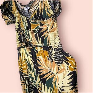 Patrons Of Peace Tropical Print Short Sleeve Rayon Puckered Jumpsuit size M