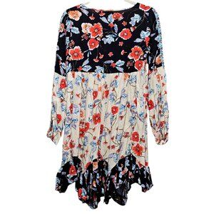 Patrons Of Peace XS Floral Boho Dress DB Black Print Floral Pattern
