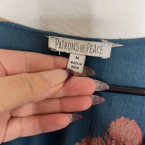 This is a Patrons of Peace, 100% Rayon, faux wrap Floral Dress in size medium