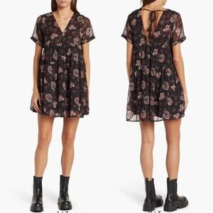 Patrons of Peace Adele Tie Back Paisley Floral Short Sleeve Babydoll Mini Dress