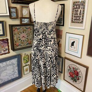 Patrons of Peace Black & White Botanical Print Rayon Strappy Midi Dress Size L