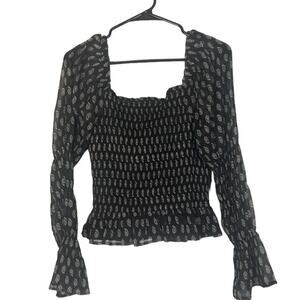 Patrons of Peace Black & White Long Sleeve Puff Sleeve Blouse Women Sz S