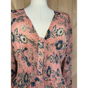 Patrons of Peace | Boho Pink and Blue Floral Long Dress | Size Medium