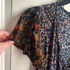 Patrons of Peace Floral Autumn Wrap Maxi Boho Peasent Flowy Dress Size XS