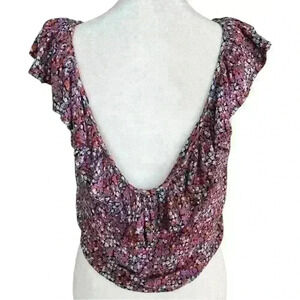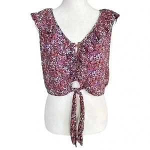 *flaw* Patrons of Peace Floral Print Cropped Top V Neck Tie Front Ruffles Medium