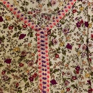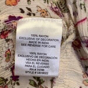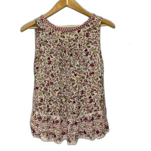 Floral tank top with pink crochet trim. Sleeveless design. Lightweight and flowy.