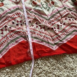 Patrons of Peace M floral kimono in red, cream, pink and green