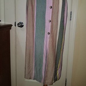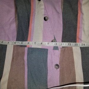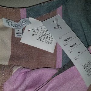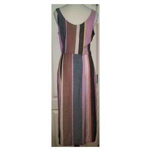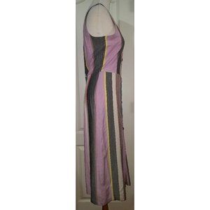 Patrons of Peace Mocha Multicolor Striped Buttons Front Dress Medium Small NEW