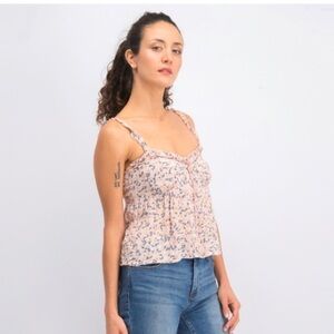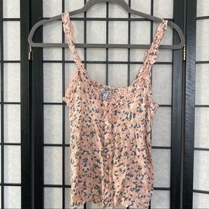 NEW Patrons of Peace Nathalie Sleeveless Crop Smocked Top Pink Cream Combo