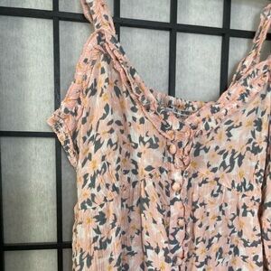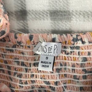 Patrons of Peace Nathalie Sleeveless Crop Smocked Top Pink Cream Combo Small