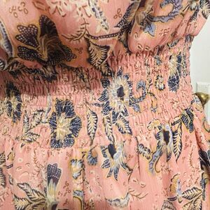 Patrons of Peace OTS Fresco Dress Sz Large Peach Floral Tiered Skirt. Length 38", all other measurements are in the photos. Great preowned condition.