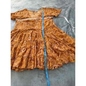 Patrons of Peace Orange Paisley V Neck Floral Pattern Knee Length Dress Womens S