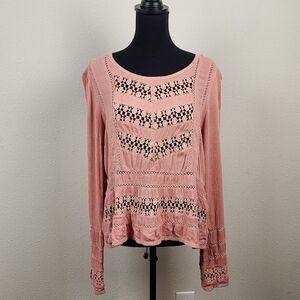 Patrons of Peace Pink Front Knit Long Sleeve Boho Style Top Size Medium