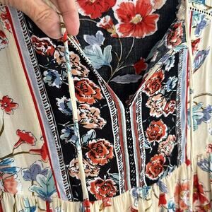 Patrons of Peace Red Blue Cream Floral Mini Dress Ruffle Festival Boho Hippie