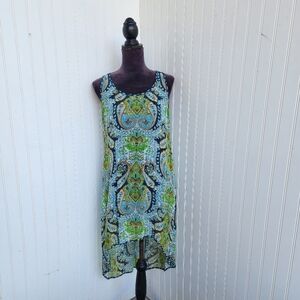Patrons of Peace Sleeveless Shift Dress Handkerchief Boho Hi- Low Racerback L