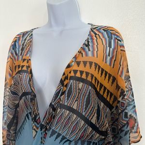 Patrons of Peace Western Style Kimono, Size M/L, Colorful, Blue and Orange, NWOT