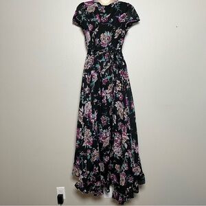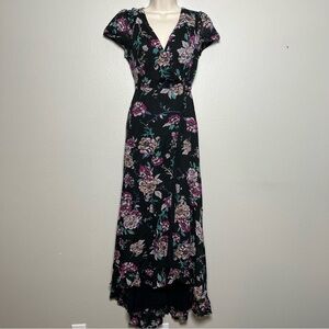 Patrons of Peace Women Maxi Dress Small Black Dark Moody Floral Wrap Tie Waist