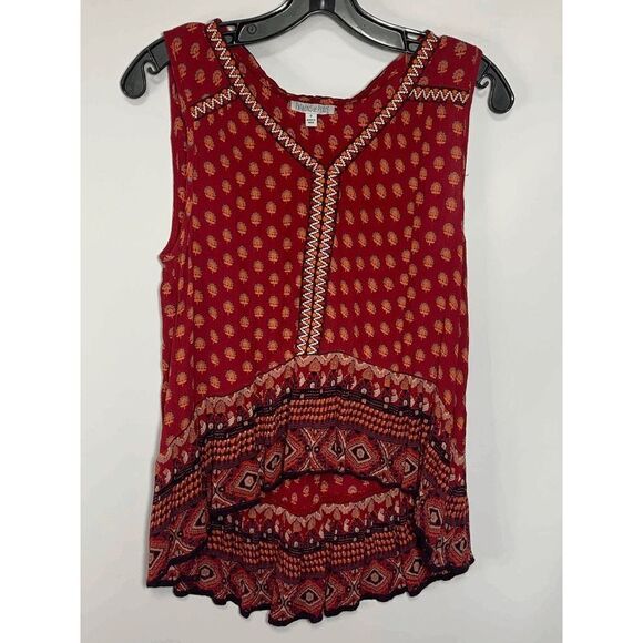 Patrons of Peace Women's Sangria Floral Embroidered Indian Tank Top Red Small