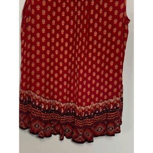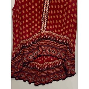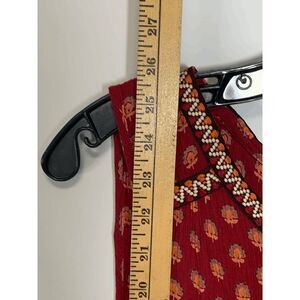 Turn heads wherever you go with our Patrons of Peace Women's Sangria Floral Embroidered Indian Tank Top in Red Small. While the distinct floral embroidery adds a touch of traditional charm, the classic tank top design adds a modern twist. Engineered using a lightweight fabric, this top ensures utmost comfort, making it a favorite go-to garment. Whether you're out on a sunny day or having a busy day indoors, this red tank top makes sure you remain stylish and comfortable.