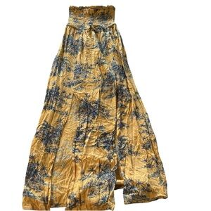 Patrons of Peace women's size small strapless yellow and blue summer dress with 2 slits, smoke and pet free home