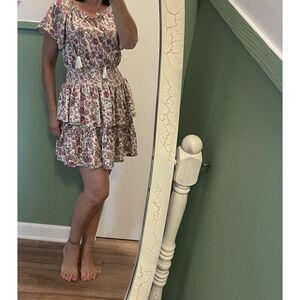 Patrons of Peace Boho Floral Tiered Mini Dress Smocked Waist Ruffle Hem
