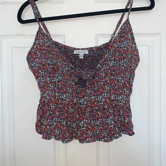Like new. Patrons of Peace Floral Tank Top with Tie Peek Hole Detail. No Flaws.