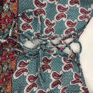 Patrons of Peace layered tent dress size M. Perfect for summer festivals. Side ties, spaghetti straps, paisley design fabric. Excellent preowned condition. See pics for care tags and approximate measurements.
