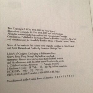 Delight in the enchanting world of Patsy Scarry's Big Bedtime Storybook! This charming hardcover edition, authored by Patricia M. Scarry and published by Random House Children's Books in 1980, is a treasure trove of delightful tales to soothe your little ones to sleep.