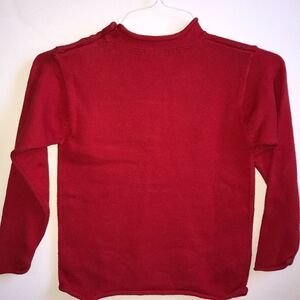 Patsy Aiken/Chez Ami Girls red sweater, “A”, large is the tag size which per Patsy Aiken’s website is a 7/8; measures 19” down the back; in excellent preowned condition