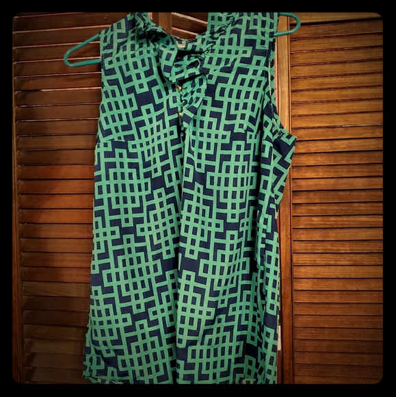 Breathable comfy versatile business casual Blouse in navy blue and emerald green pattern 💙💚