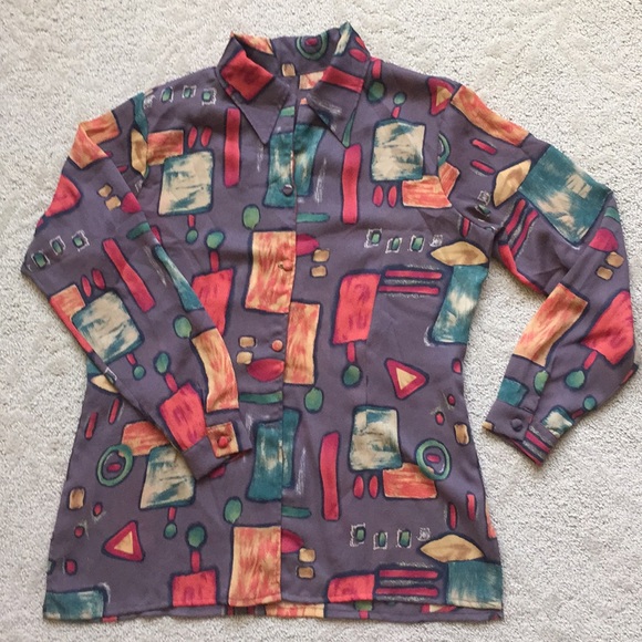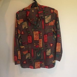 Unique blouse with artistic patterns. One of a kind piece. However it is missing one button at the bottom. Make an offer.