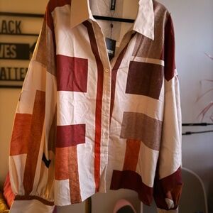 Brown/Tan/Color Block Blouse - wide sleeves, long, brand new with tags.