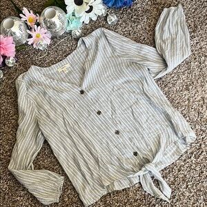 Stylish gray button-down top with a tie-front design. Perfect for casual outings.