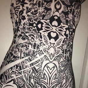 Worn once 96% polyester 4% elastine. Hugs Body. Open shoulder pattern dress.