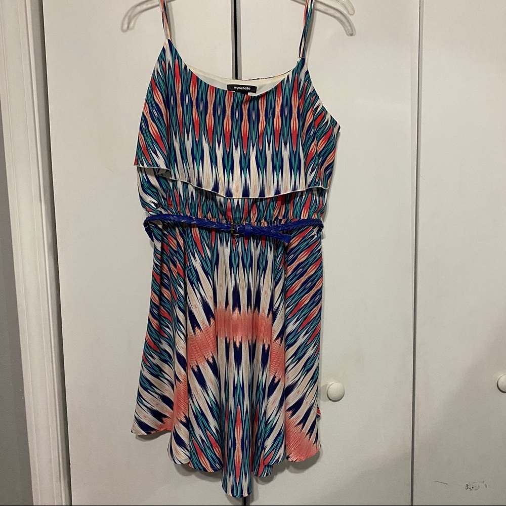 Beautiful summer/spring dress, hardly ever wore it, comes with a blue belt, straps are adjustable, and in good condition.