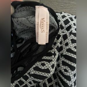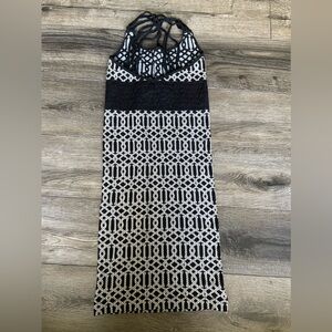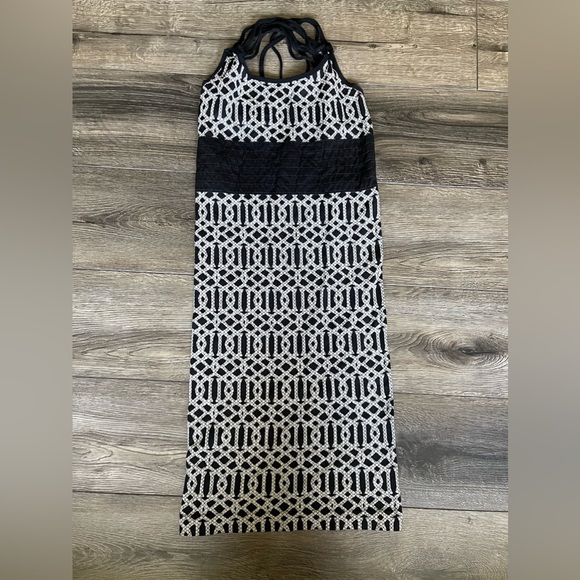 Pattern dresss color gray and black. One size in good condition. Material very stretchy.