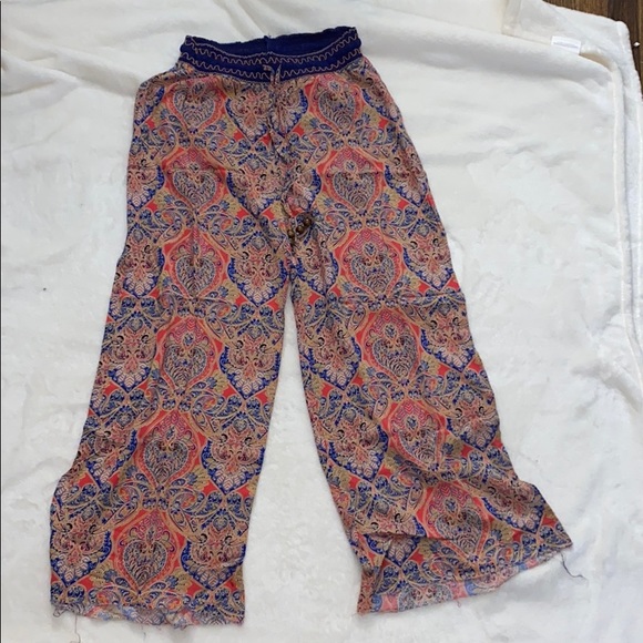 High/adjustable waisted pattern pants. Flattering synched waist with a flowy leg