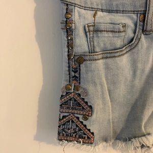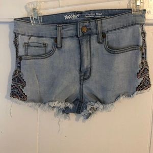 Jean shorts. Pattern running down sides. Open to offers!