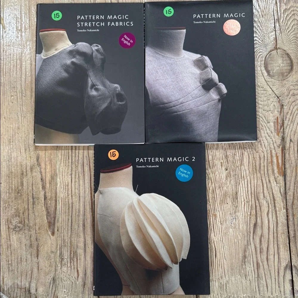Set of three Pattern Magic books. Features unique fabric designs and techniques. Perfect for fashion enthusiasts.