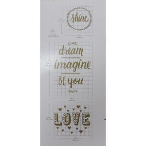 This Booklet of lettering, hearts and wreath is complete. Never used but seals were missing. Designed by Paper Riot for Kohl's. lettering is Gold tone and needs a large area for display. There are 41 removable decals. ©2016 Garven LLC