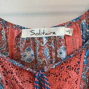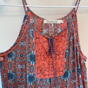 Cute orange and blue pattern with tassels at neckline
