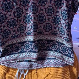 Fun pattern blouse purchased from Abercrombie and Fitch. Criss-cross string in the front and flare out sleeves. It’s super cute and In good condition :))