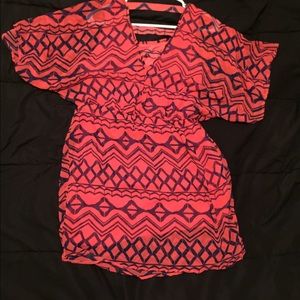 It's a short sleeve orange and blue dress. Never worn like new.