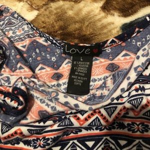 Beautiful pattern dress. It says a large but buts really really short so consider it an XS for juniors unless you want to wear leggings under it & use it as a top.